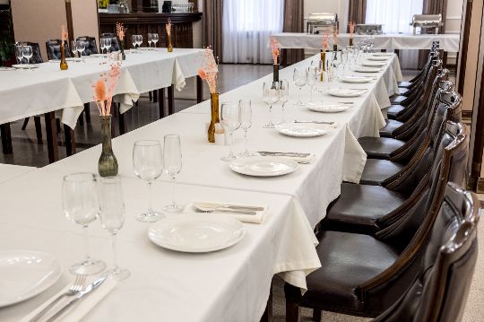 Ресторан Европа предлагает своим гостям не только вкусную кухню, вежливое обслуживание и приятную атмосферу, но услугу аренды банкетного зала. Банкетный зал ресторана Европа рассчитан на 100 гостей. Интерьер главного зала ресторана выполнен в классическом стиле, что помогает адаптировать его для любой тематики вечера. Цветовая гамма интерьера выдержана в гармоничном сочетании кремового и белого оттенков, что позволяет гостям погрузиться с первых минут торжества в классическую роскошь.